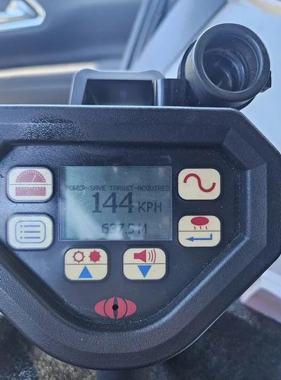 施密特在社交媒體平台X上發布的照片顯示,測速雷達紀錄到該車時速達144公里。