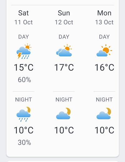 【明報專訊]多倫多今日晴間陰或有驟雨,氣温攝氏10度至15度,明日晴間陰氣溫攝氏10度至17度,後日晴間陰,氣温攝氏10度至16度。