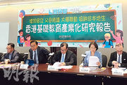 經民聯噚日拉隊開記招,建議將「留學香港」品牌擴展至中小學。主席盧偉國(中)鰤搧社蘢`被問到「大主席」梁君彥宣布唔再參選,佢話:「呢個唔鬗竣曀o布會議程入面。」(李雯懿攝)