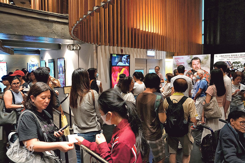 市民單先生(左)和賴小姐(右)昨前往油麻地百老匯電影中心看戲,他們平時每個月入場一次,昨趁茈b價優惠一日看兩場。(廖凱霖攝)