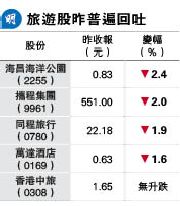 科網內房顯著回吐 旅遊股臨黃金周尾聲「散水」