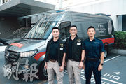 鑑證科先進科技課成員高級警員黃定宇(左起)、總督察檀東輝博士、高級警員張曉勝,他們背後是「罪案現場勘查流動實驗室」(CSI流動實驗室)。