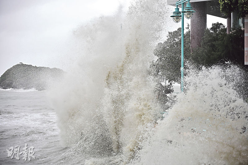 2018年遭超強颱風「山竹」重創的將軍澳海濱長廊,雖然政府已預先擺設沙包及水馬,但仍被強風吹散,臨海餐廳被海浪}開大門,海水湧入推倒店內桌椅(見另稿)。另有網上流傳影片顯示,長洲東灣整片沙灘及岸上民房不斷遭巨浪}擊拍打,儼如海嘯。此外,紅磡海逸豪園對開海面昨凌晨有8艘船包括5艘躉船因走錨而撞岸,部分船上天秤倒下。