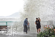 警方及消防均在facebook呼籲,極端天氣期間如非必要切勿外出甚至冒險追風,應留在安全地方,保護自身安全。不過昨早10號風球生效時,本報記者於南區海怡半島岸邊見到不少人觀浪,其中3名非華裔人士拍照時有巨浪拍上岸,3人瞬即被吞噬,幸有驚無險只跌坐地上。記者所見當時巨浪約3個成年人高,其中一名年輕女子走避時顧荌祀|手機,另一女子則護茖k童,男童被}跌後驚慌哭泣。