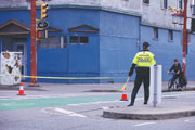 ĵ¤è¬Q¦­¬£¥X¤j¶qĵ­û¦b³õ»`ÃÒ½Õ¬d¡A¦a¤W¦³©úÅã¦åº{¡A°£¤F½qµó§¨¸Î¤¯µóªº®×µo²{³õ¦³¤j½d³ò«Ê¸ô¥~¡A®ÇÃ䪺³ìªv¨Èµó(Georgia St.)¥H¤Î»í¥_§Jµó(Quebec St.)¸ô¤f³£¦³Äµ¨®¾n¦u¡A¸T¤î¨®½ø¾p¶i¡Cª½¨ì¤¤¤È¡A·Å­ôµØ®ø¨¾¤Î±Ï´©ªA°È³B(VFRS)³Q¥l¨ì³õ¡A®ø¨¾­û¨Ï¥Î®ø¨¾³ï¨R¨ê¦a¤W¦åº{¡Fĵ¤èµy«á¥ç³v¨B­«¶}³Q«ÊÂꪺ¸ô¤f¡C
