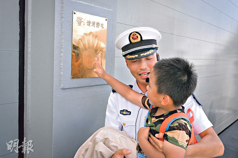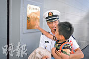 【明報專訊】正停靠昂船洲軍營碼頭的解放軍海軍戚繼光艦及沂蒙山艦,昨起一連兩日組織艦艇開放活動。昨早開放前,軍營門外有逾百人提早到場排隊。有居港內地軍事迷身穿網購軍人裝束登艦,形容心情激動;亦有小孩早前錯過山東艦來港感遺憾,父母為兒子「圓夢」而一同到場參觀。編隊昨安排海軍樂隊表演,獻唱《海闊天空》、《月亮代表我的心》等經典歌曲。