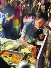 江西景德鎮市「雞排哥」攤位火爆,國慶期間忙到面容扭曲。(網上圖片)