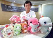 粵港澳全運會11月9日開幕,全國運動會統籌辦公室主任楊德強接受本報專訪稱,期望香港這次相隔16年再辦大型綜合運動會,主場之利助香港運動員在獎牌數目取得突破。圖前方為今屆全運吉祥物「喜洋洋」和「樂融融」最新推出的商品。(李紹昌攝)