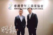 香港青年工業家協會(HKYIC)會長蔡俊杰(左起)、榮譽會長高鼎國稱協會2022年起就知識產權融資向政府提建議,蔡認為新措施有助推動本港知識產權「資產化」,鼓勵企業加強研發投入。(協會提供)