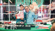 香港藝術家陳幼堅(右)在其作品《Canton Disco》中展示張國榮及梅艷芳當年的唱片封套。(林迎攝)